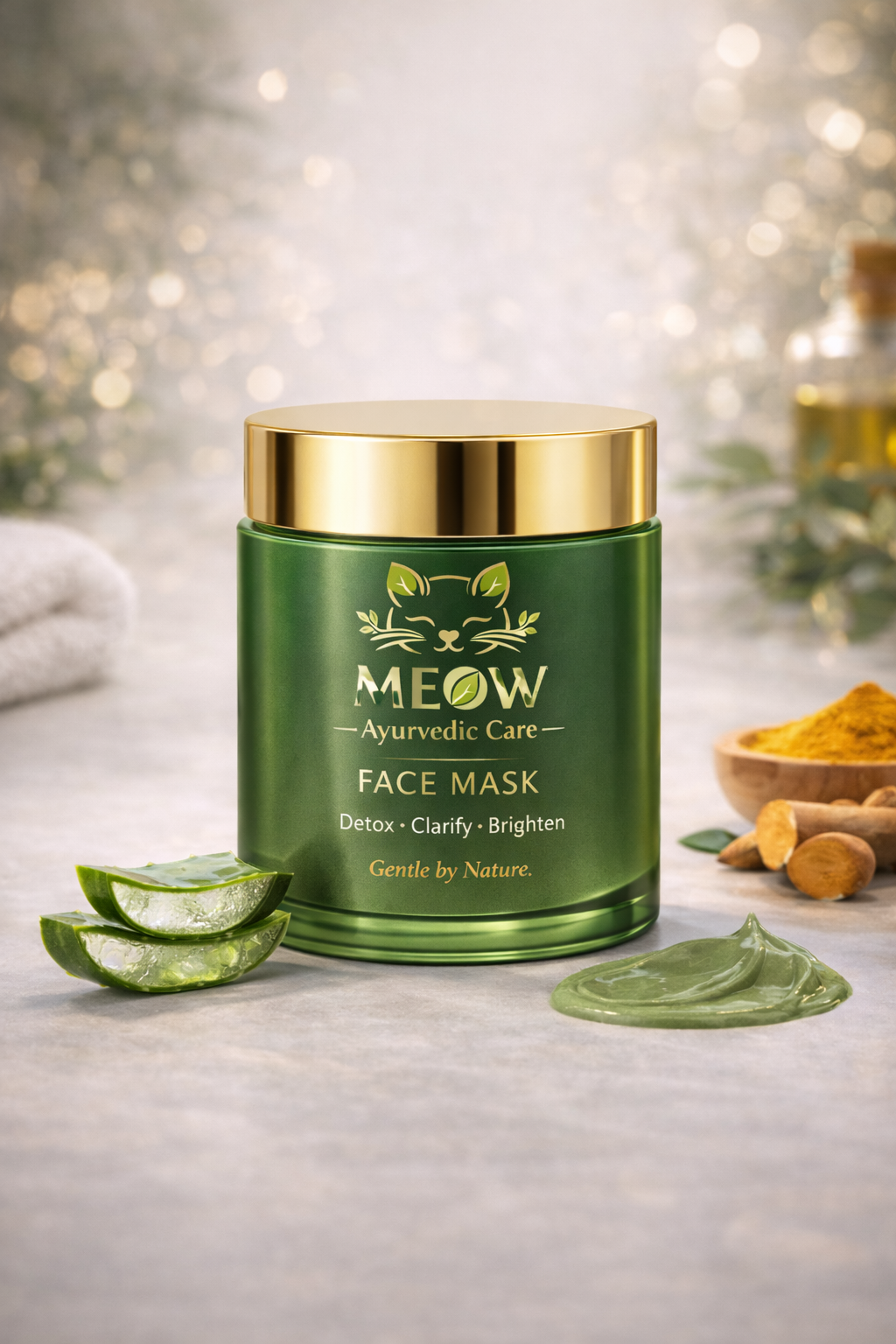 Meow Ayurvedic Face Mask is a thoughtfully crafted blend of traditional Ayurvedic herbs designed to deeply cleanse, detoxify, and rejuvenate your skin. Inspired by time-tested Ayurvedic rituals, this face mask helps remove impurities, control excess oil, and restore your skin’s natural glow — without harsh chemicals.